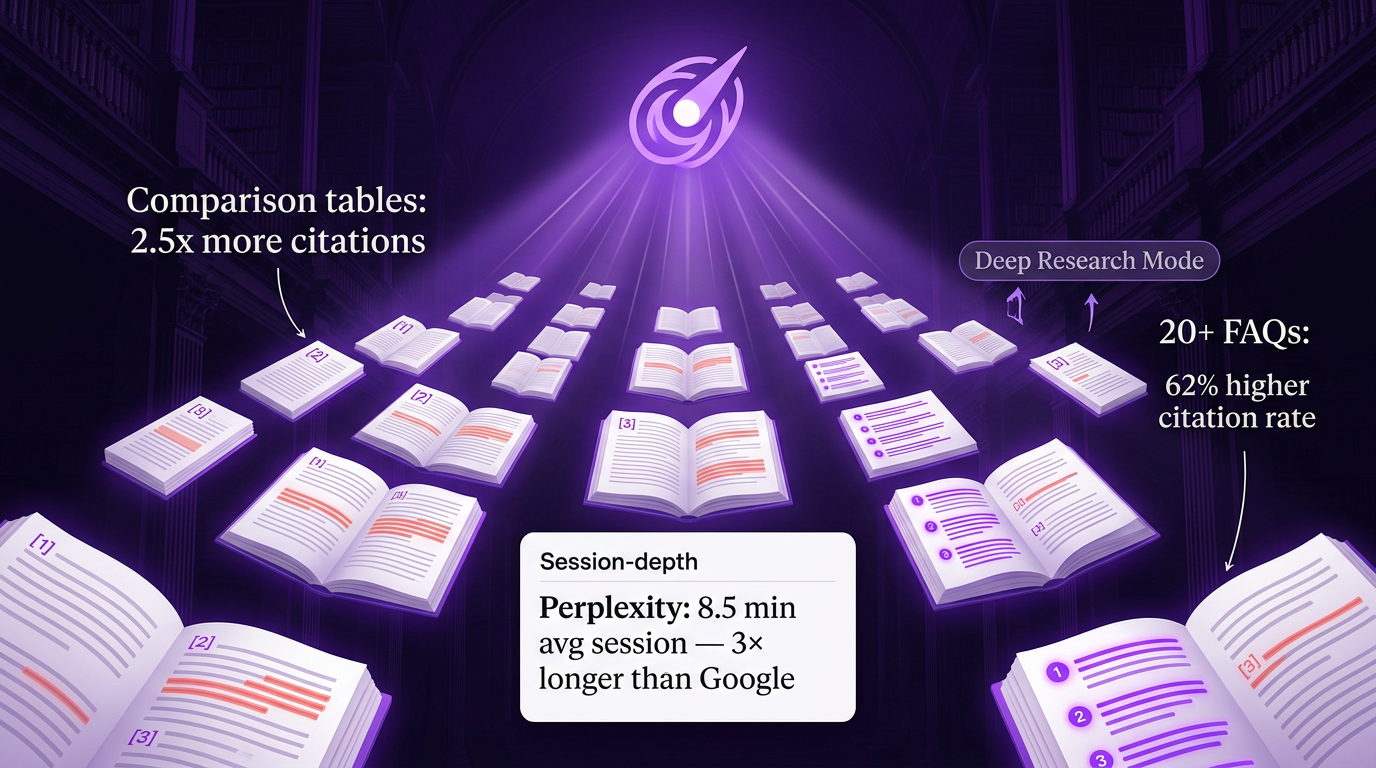 Perplexity excels at question-answering. Comprehensive FAQ sections are gold mines for citations.
